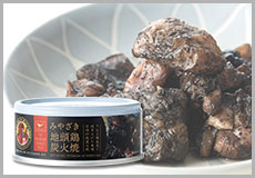 宮崎名物の「鶏の炭火焼」を再現した炭の香りが広がる食欲をそそる一品です。いつでも常温保存でき、お酒のおつまみに最適、缶から器に移して温めるとより一層美味しくお召し上がりいただけます。またチャーハンの具材としてもオススメです。