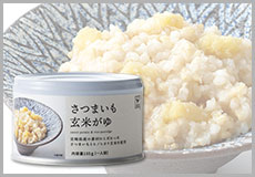 宮崎生まれのサツマイモ「べにはるか」と、宮崎生まれのお米「ヒノヒカリ」を使った宮崎の恵みが詰まった缶詰です。芋も玄米もビタミンや食物繊維が豊富な食材。調味料は塩のみで、芋の甘みと玄米の風味を感じられる素材の味わい豊かな一品です。
